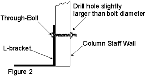 - Lắp ráp: Nếu cài đặt yêu cầu một phương pháp bảo vệ cột tại chỗ trước khi tải được áp dụng, các khung L L kim loại (kích thước được đề xuất 1 1/2 ″ x 1 1/2) có thể được sử dụng miễn là chúng không can thiệp vào chỗ ngồi của nắp và chân đế / chân đế. Đối với ứng dụng này, có thể cần phải chia vốn thành hai nửa để cho phép gắn các dấu ngoặc góc vào chùm / soffit. GHI CHÚ: Luôn khoan lỗ giải phóng mặt bằng trong trục cột và giá đỡ góc an toàn bằng bu lông. – KHÔNG SỬ DỤNG SCREWS – KHÔNG QUÁ TẢI. (Xem hình 1 và 2 bên dưới.)
